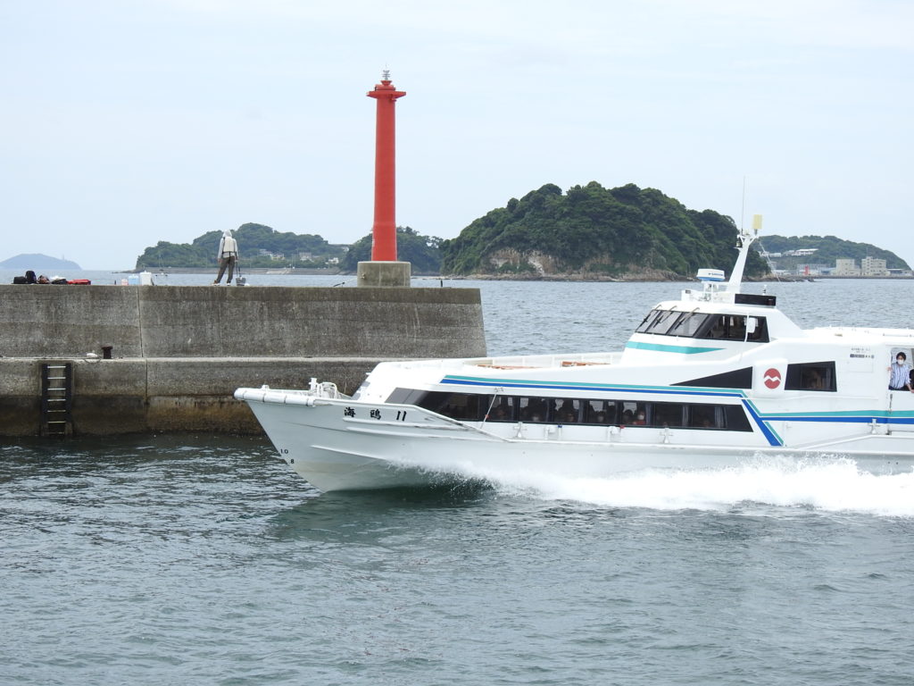 知多半島と渥美半島の先端に浮かぶ島々を繋ぐ名鉄海上観光船さんの高速船が大勢のお客さんを乗せて入港です。