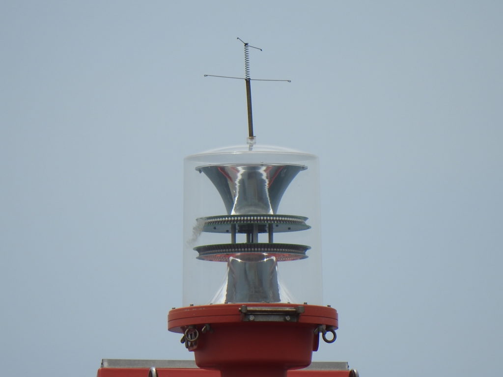灯台さんにご挨拶しましょう。初点記念銘板は向こう側を向いていて見ることは出来ませんが、幸い周りに人がいないので大きな声で灯台に向かって、