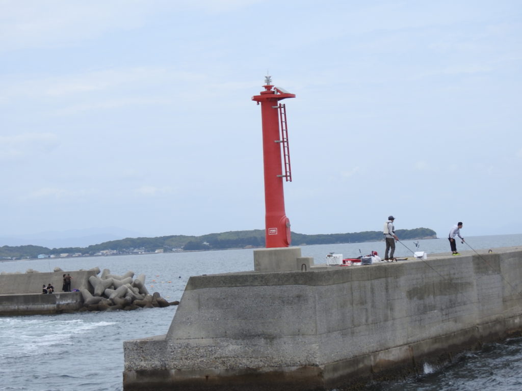 訪ねる灯台は日間賀港第19号防波堤は陸続きではありません。でも釣り人がいるんですよね。