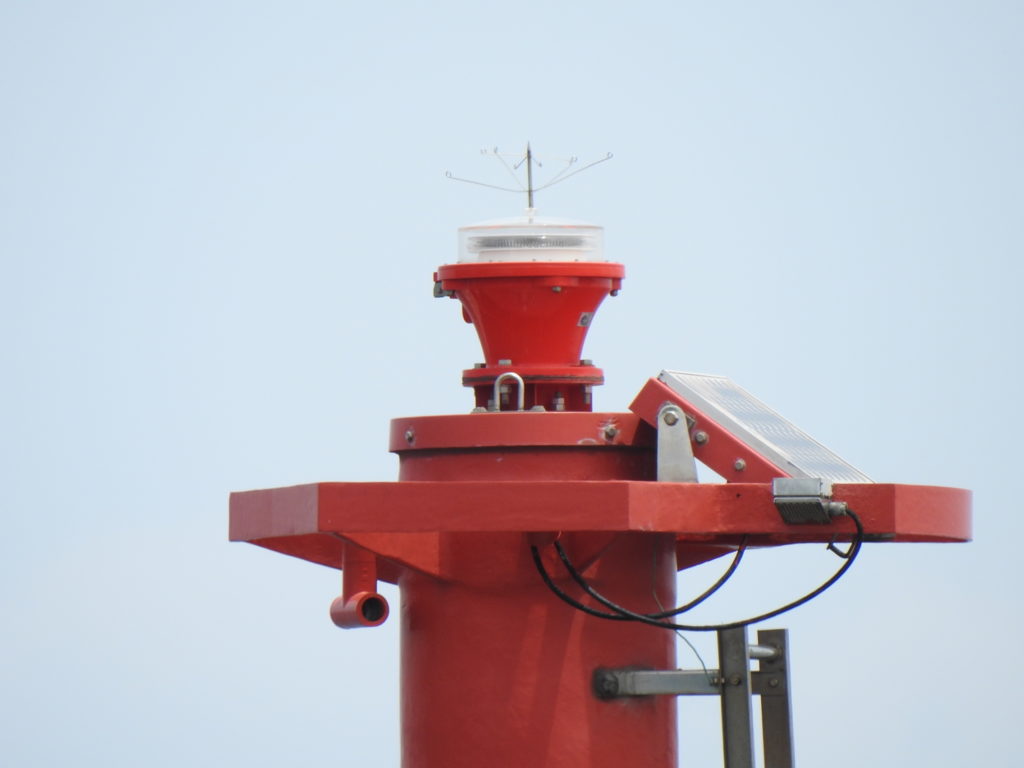 強化プラスチック造りのFLC型。今では防波堤灯台の定番と言っても良いくらい。