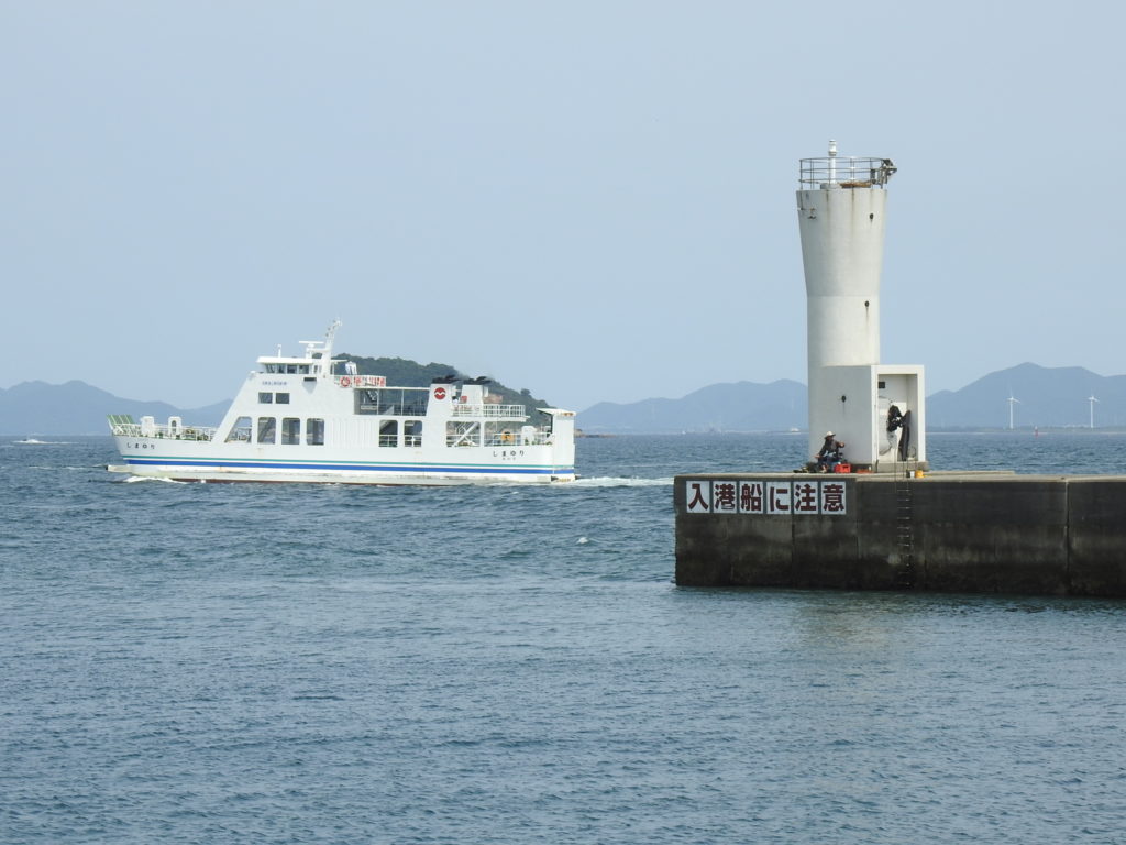 名鉄海上観光船さんのフェリー「しまゆり」が灯台の横を通り過ぎていきます。
