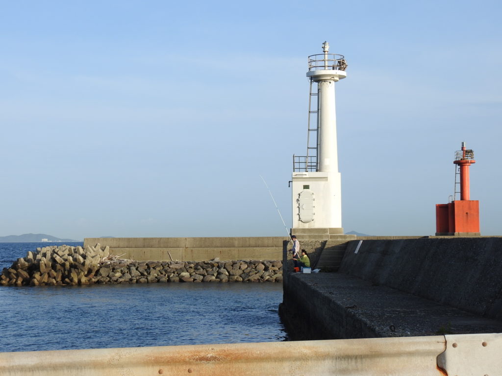 そして右に見えている赤灯台は「豊浜港中洲沖防波堤西灯台」。