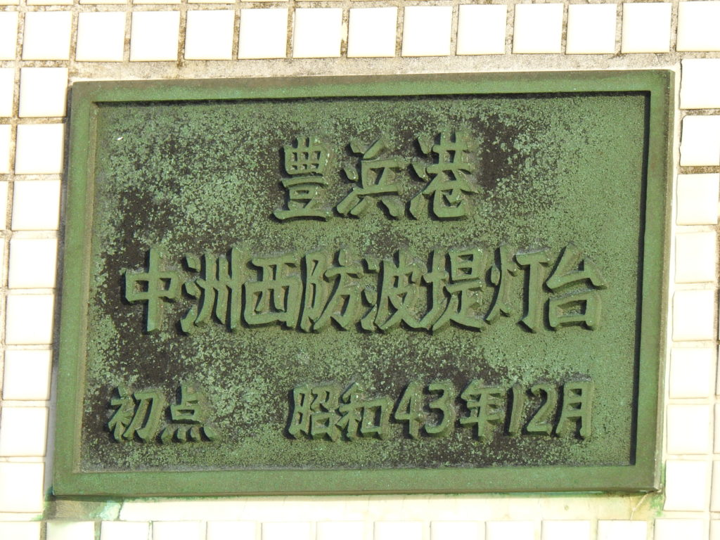 手前の白灯台が今回お訪ねする「豊浜港中州西防波堤灯台」。