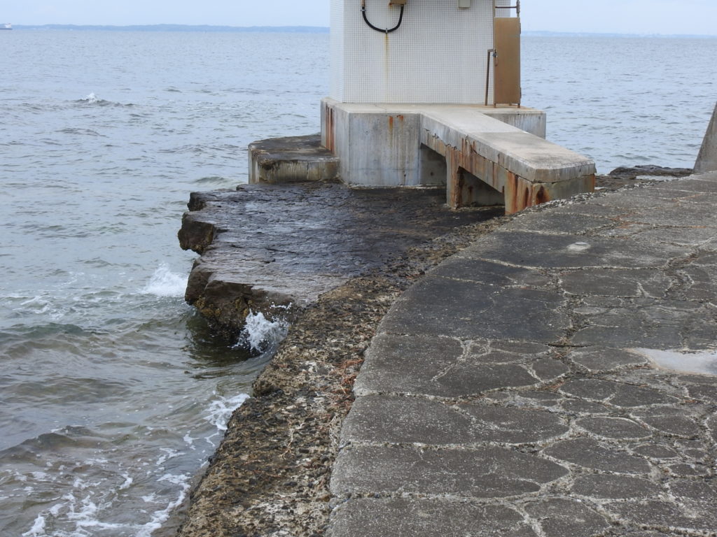 灯台の足元。幅40㎝ほどのコンクリート橋を渡って灯台へ。波が荒けりゃとっても渡るどころか近づくことも出来ません。